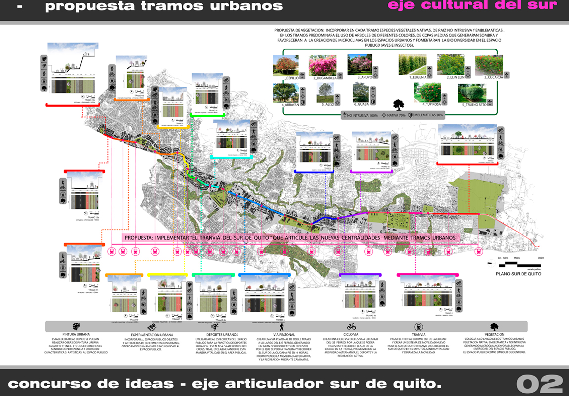 Mediante acupuntura urbana se propone un nuevo sistema de movilidad con el Tranvía para el sur de Quito, que conecta las unidades urbanas (microcentralidades) que cuentan con equipamientos estructurantes como sedes de educación superior en artes visuales, artes escénicas, artes literarias y artes musicales, la casa de la cultural y biblioteca general del sur y sedes deportivas de alto rendimiento en disciplinas olímpicas.
