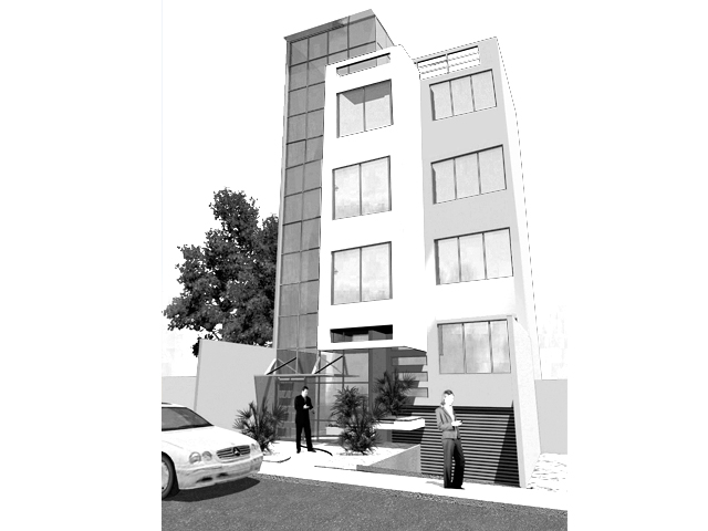 Descripción del proyecto: La idea general del proyecto surge de definir la zona pública de circulación vertical, en un bloque transparente, junto al área de recepción de cada departamento, independiente de la zona vertical pública. Esto se logró ubicando tres escalones aislados en el ingreso a cada departamento, mediante un bloque central que sobresale. De igual manera se logró aprovechar la iluminación y ventilación natural para cada espacio. Personal a cargo: 5 personas.