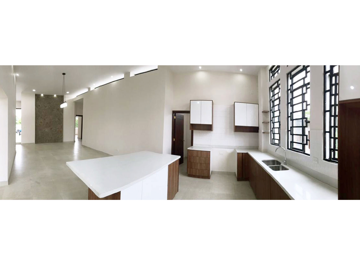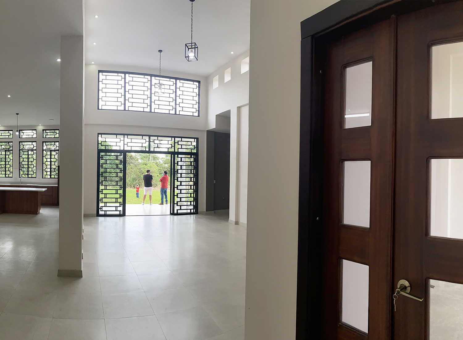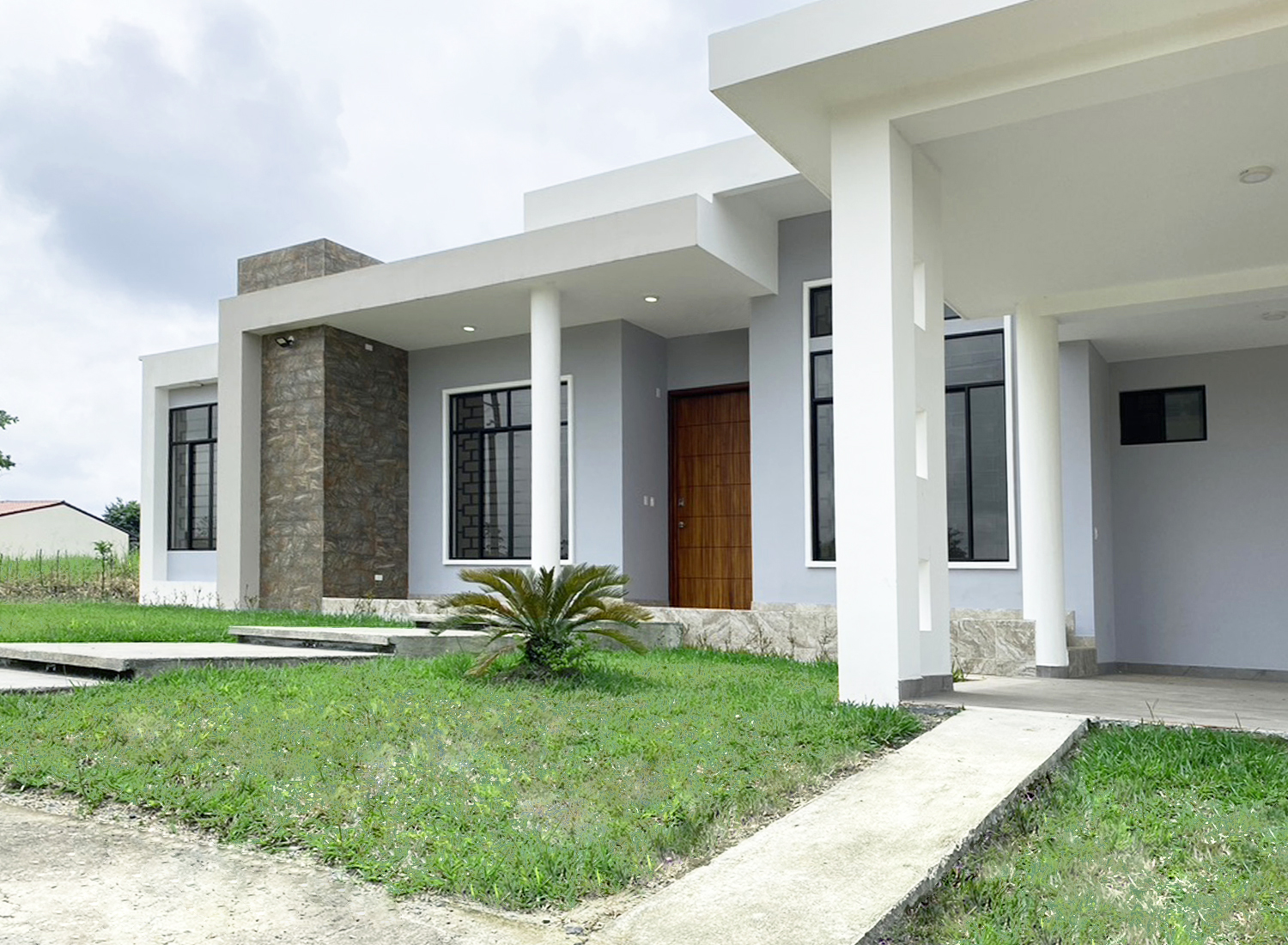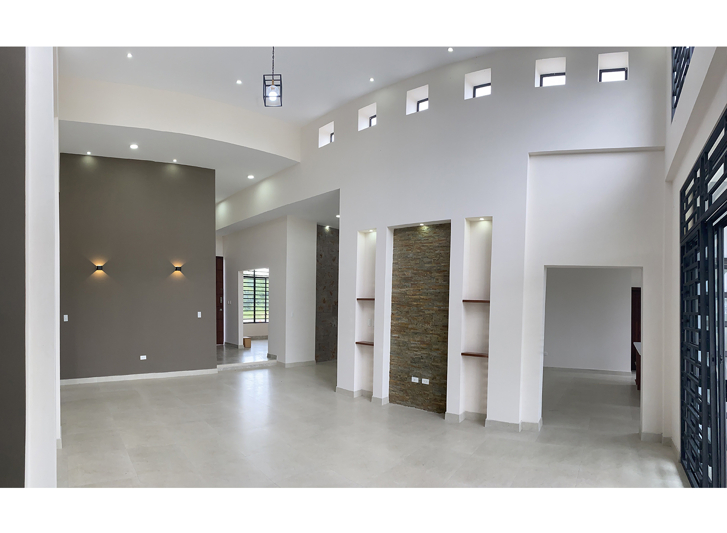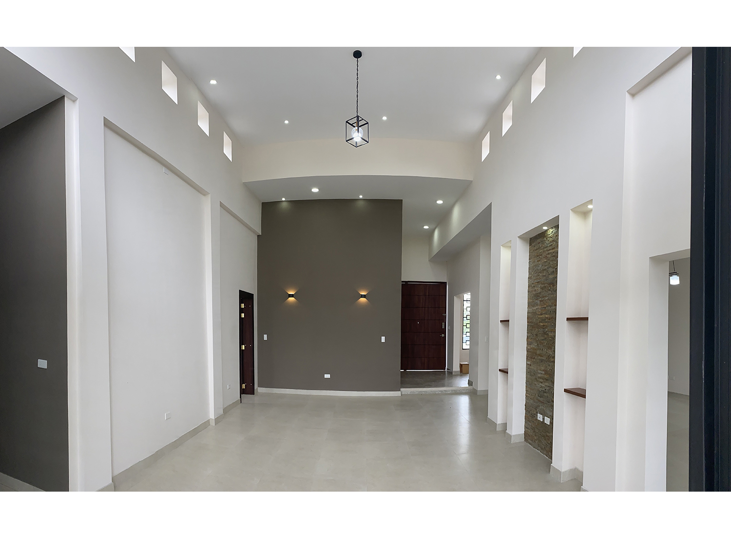 Descripción del proyecto: En un terreno aproximado de 1100 m2, ubicado en una zona húmeda subtropical de la región límite entre costa y sierra del Ecuador, se emplaza la vivienda unifamiliar, dentro del conjunto Rancho San Miguel, rodeado de paisajes naturales y limitado por un estero. Junto con los clientes, ambos ingenieros agrónomos, se llevó a cabo el proceso de diseño, acorde a sus necesidades, tanto en la distribución como en la volumetría. La casa se desarrolla alrededor de un espacio social ubicado en el centro, a una altura y media, alrededor se ubican las demás áreas de la casa. El juego volumétrico se logró ubicando diferentes alturas en los dormitorios, accesos, y espacios servidores como cocina y comedor. Una característica especial de la vivienda es el sistema de recolección de aguas lluvias para reutilización de agua no potable y riego, ya que los clientes desean hacer producir el terreno circundante, logrando un ahorro importante de éste recurso. La vivienda está implementada con un sistema de control domótico.