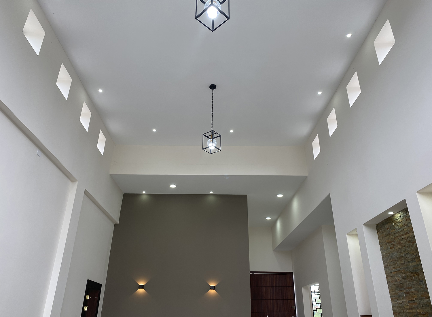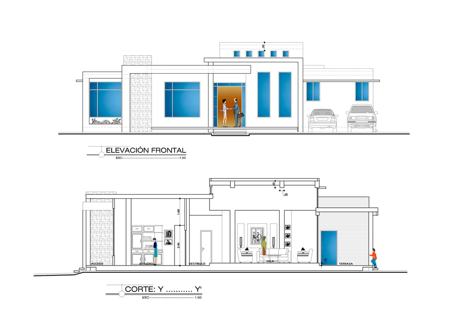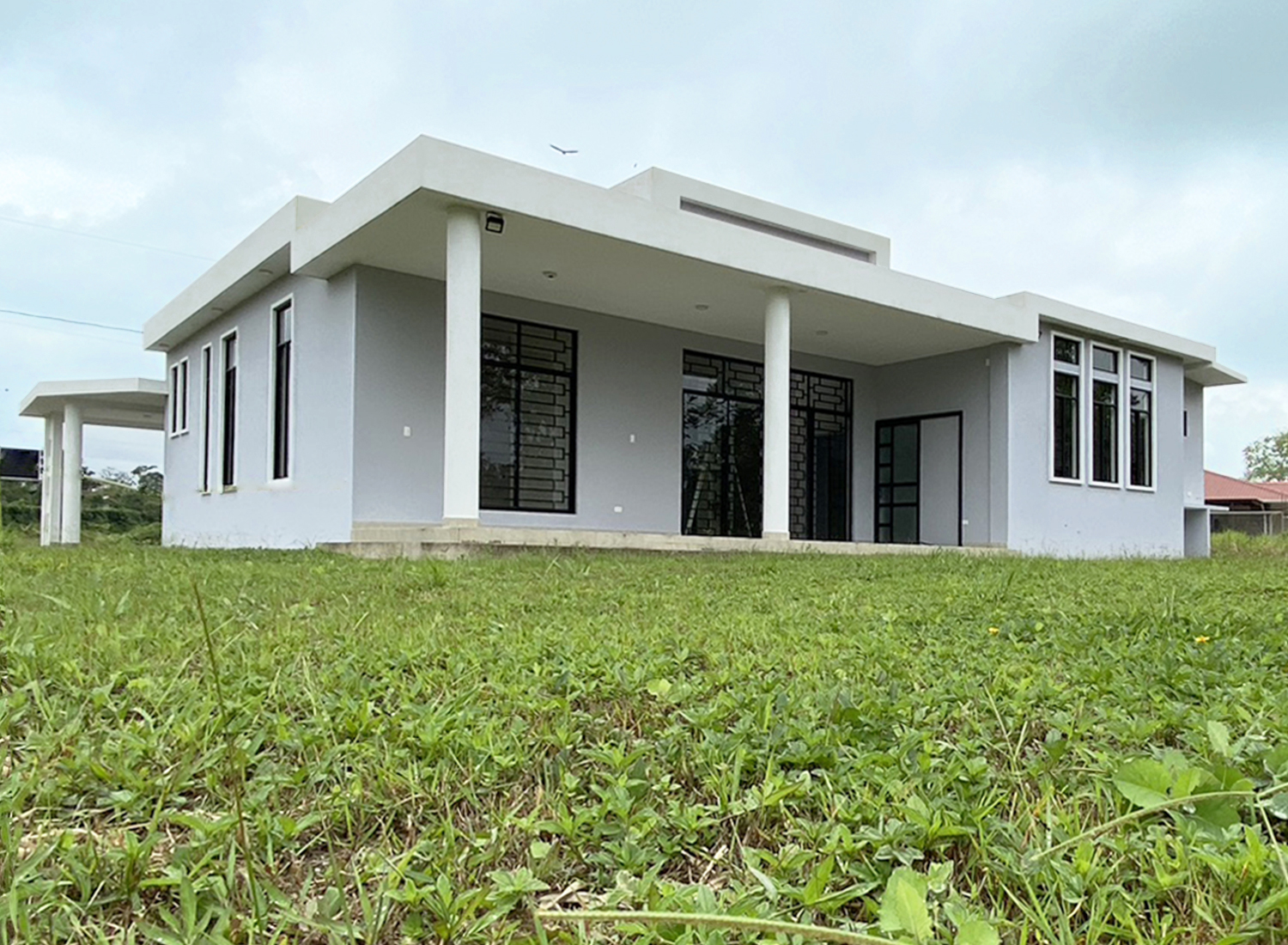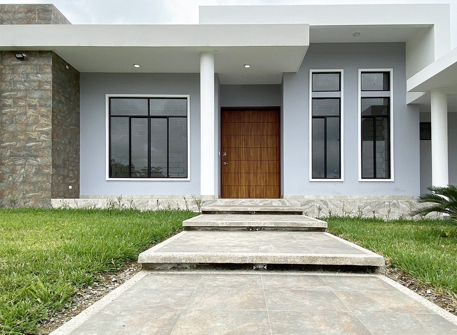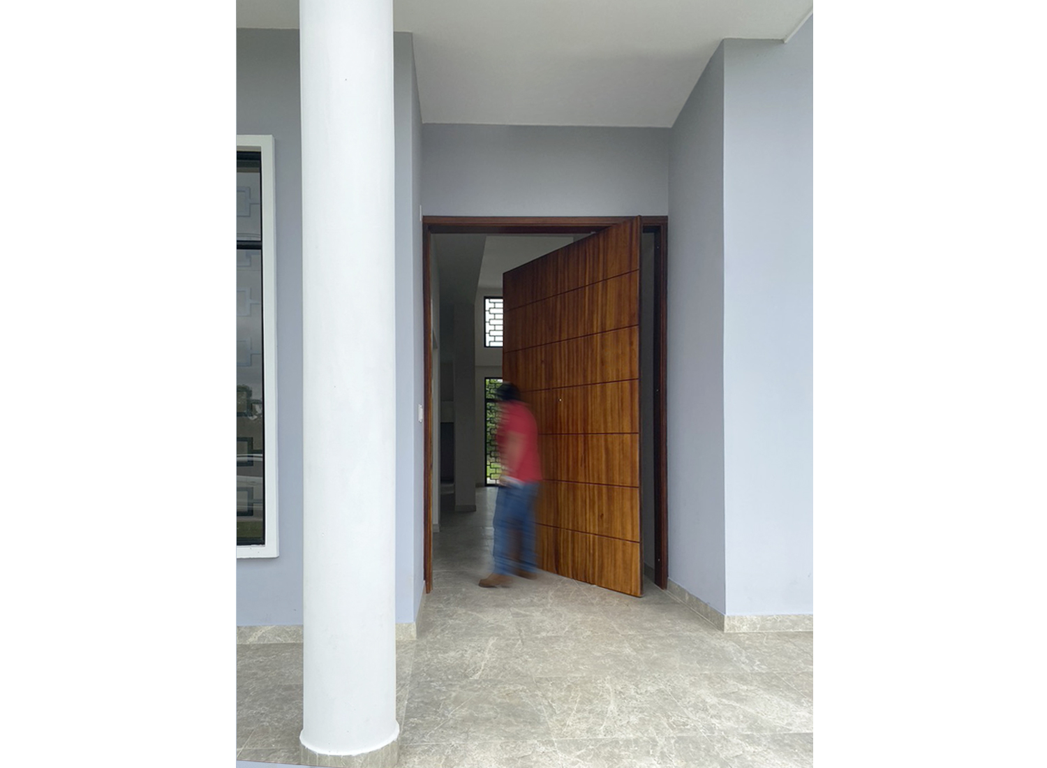Descripción del proyecto: En un terreno aproximado de 1100 m2, ubicado en una zona húmeda subtropical de la región límite entre costa y sierra del Ecuador, se emplaza la vivienda unifamiliar, dentro del conjunto Rancho San Miguel, rodeado de paisajes naturales y limitado por un estero. Junto con los clientes, ambos ingenieros agrónomos, se llevó a cabo el proceso de diseño, acorde a sus necesidades, tanto en la distribución como en la volumetría. La casa se desarrolla alrededor de un espacio social ubicado en el centro, a una altura y media, alrededor se ubican las demás áreas de la casa. El juego volumétrico se logró ubicando diferentes alturas en los dormitorios, accesos, y espacios servidores como cocina y comedor. Una característica especial de la vivienda es el sistema de recolección de aguas lluvias para reutilización de agua no potable y riego, ya que los clientes desean hacer producir el terreno circundante, logrando un ahorro importante de éste recurso. La vivienda está implementada con un sistema de control domótico.