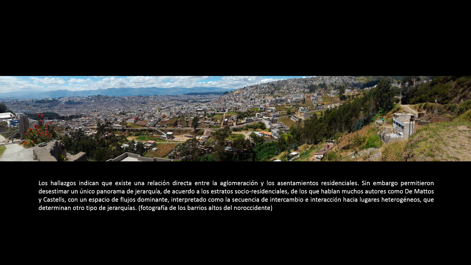 Análisis crítico de las diferentes posturas teóricas surgidas a partir del uso masivo de las Tecnologías de la Información y Comunicación, que configuran el concepto de Ciudad Informacional, cuyo principio fundamental es la transformación de la estructura ocupacional y la aparición de un nuevo sector productivo, el cuaternario, que incide en las dinámicas no solo económicas de un país, sino en las dinámicas de flujos intraurbanos, la configuración geográfica, así como en la calidad de vida. Las principales variables de investigación se derivan de la pregunta ¿Cómo se relacionan los fenómenos de aglomeración-laboral y dispersión-residencial en las ciudades metropolitanas latinoamericanas en proceso de informacionalización?, y como pregunta complementaria se plantea ¿Qué papel cumple el espacio de los flujos? La hipótesis surgida es: La aglomeración-laboral se relaciona con la dispersión-residencial, de una manera directa a través de las redes de flujos, mediante una relación espacial origen destino, facilitada por un lado en la base material que articula ambos fenómenos (infraestructura, movilidad, cobertura), y por otro lado en la base social que adopta éste segmento de la población, a través del alcance de contenidos de información (cultural, de consumo, estilos de vida). Estas relaciones determinan un orden espacial jerárquico basado en la estratificación social del conocimiento, sobre el territorio metropolitano, develada en las huellas que dejan las redes de flujos. Luego de la investigación empírica, los hallazgos nos permitieron ampliar el único panorama de jerarquía, basado en la clasificación de actividades económicas de acuerdo a los estratos socio residenciales en el territorio, de la que hablan muchos autores, como De Mattos y Castells, con un espacio de flujos dominante que resulta ser el protagonista en la nueva dinámica informacional, interpretada como la secuencia de intercambio e interacción hacia los no lugares, y que determina otro tipo de jerarquías espaciales basadas en la cibercultura, una cibercultura de consumo masivo, expresada en el turismo de aventura, fenómeno que abarca muchos segmentos de la población global, en cuanto a cultura, etnia, ideología y género y que actúan dentro del espacio aglomerado, sin embargo no son parte del mismo. El espacio virtual, estaría provocando una suerte de nueva colonización territorial, inserta en el concepto de multiterritorialidad, generadora de ambientes híbridos, que mezclan los lugares y los no lugares, con espacios de transición, dentro de espacios de identidad, cultura e historia. Lo que se traduce en una nueva utilidad jerárquica del espacio informacional, medida en los flujos, pasando del grupo de estudio inicial o productor de servicios avanzados, a incluir una especie de multigrupos, ciudadanos del mundo o población flotante.