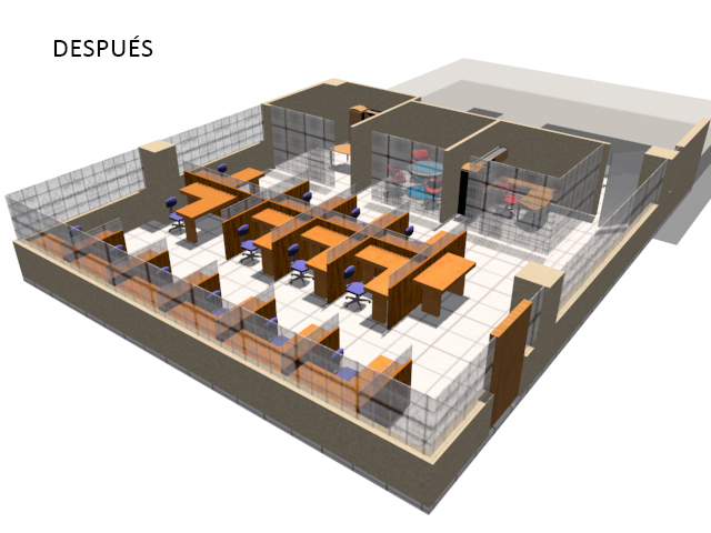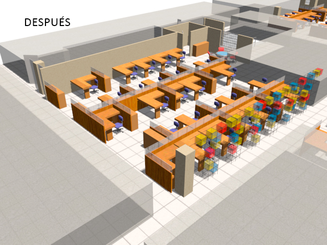Descripción del proyecto: La Empresa TAME EP solicitaba el diseño la Adecuación de oficinas en Hangar ubicado en Tababela, con el fin de trasladar personal que laboraba en la Terminal del Aeropuerto. Los requerimientos fueron el tiempo de ejecución de un mes, y el presupuesto. Se planteó el concepto de open office, eliminando paredes de gypsum y reorganizando los puestos de trabajo que ya se encontraban en segunda y tercera planta del Hangar. Se planteó un diseño sostenible reutilizando las divisiones bajas de estaciones, mamparas de vidrio y mobiliario. Se abrieron ventanas. En total se reorganizaron 162 puestos de trabajo, con una inversión recuperada en el primer mes del proyecto, así como se prevee un ahorro en energía eléctrica y una mejora en el estado anímico de los empleados, gracias a la iluminación natural y a las vistas.